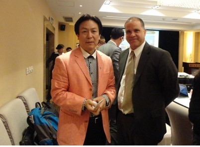 宝贝集团卞洪登先生与加勒比海地区出口发展协会的责任执行董事Mr. Escipion J. Oliveria Gomez先生互换名片